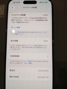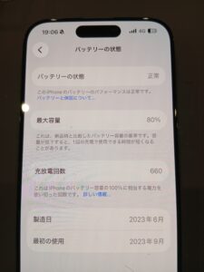 【太田店】iPhone15Proのバッテリー交換修理【高崎市からご来店】
